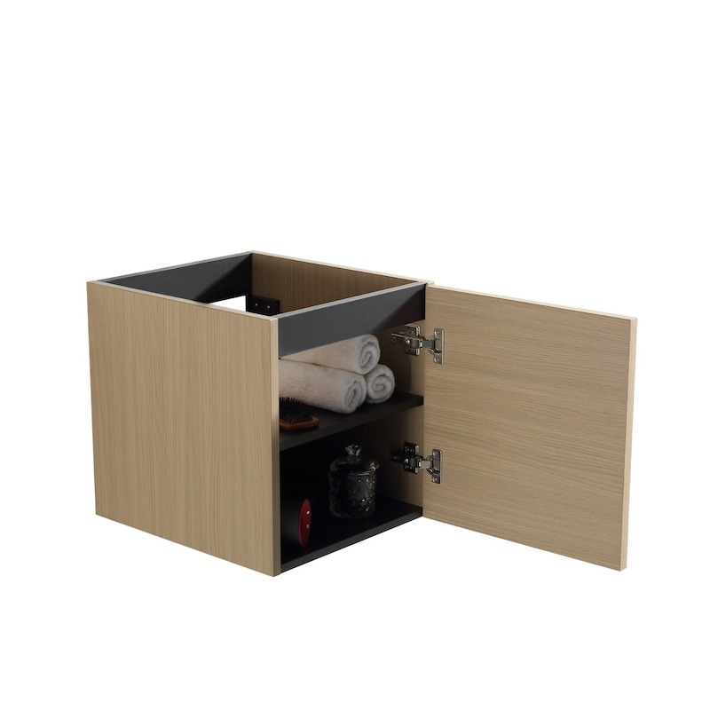 The 40cm Modular unit features a soft-close door, ensuring a smooth and silent closing. The opening direction is reversible, allowing for easy adaptation to any space configuration. Inside, a storage shelf optimizes organization and provides convenient storage for everyday items.