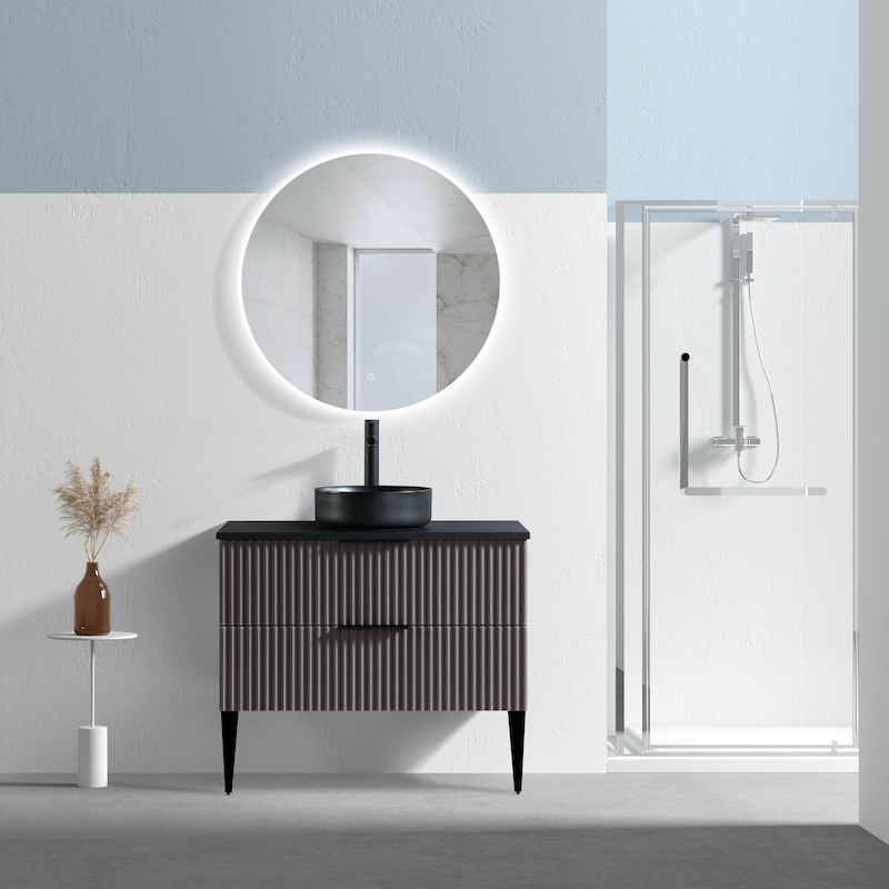 With its fluted design, the Ark freestanding vanity unit will enhance your bathroom. Available in 90 cm or 180 cm, it combines style, practicality, and personalization thanks to its numerous colors and finishes.