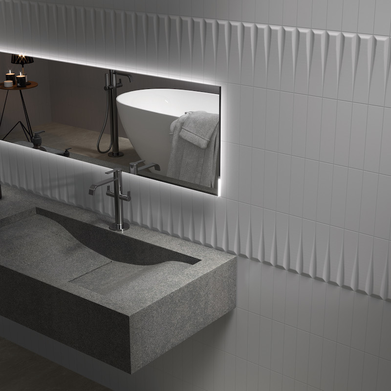 Discover the new Three-D wall tile collection from our partner APE, a collection that pays homage to three-dimensional art and geometry, evoking movement and the versatility of forms. Pair this embossed tile with its flat version, called Flat.