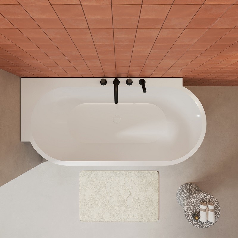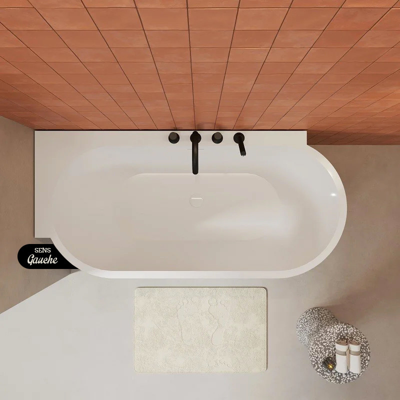 Het Line vrijstaande bad biedt twee mogelijke oriëntaties: haaks links of haaks rechts.