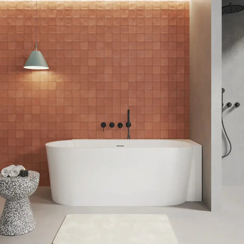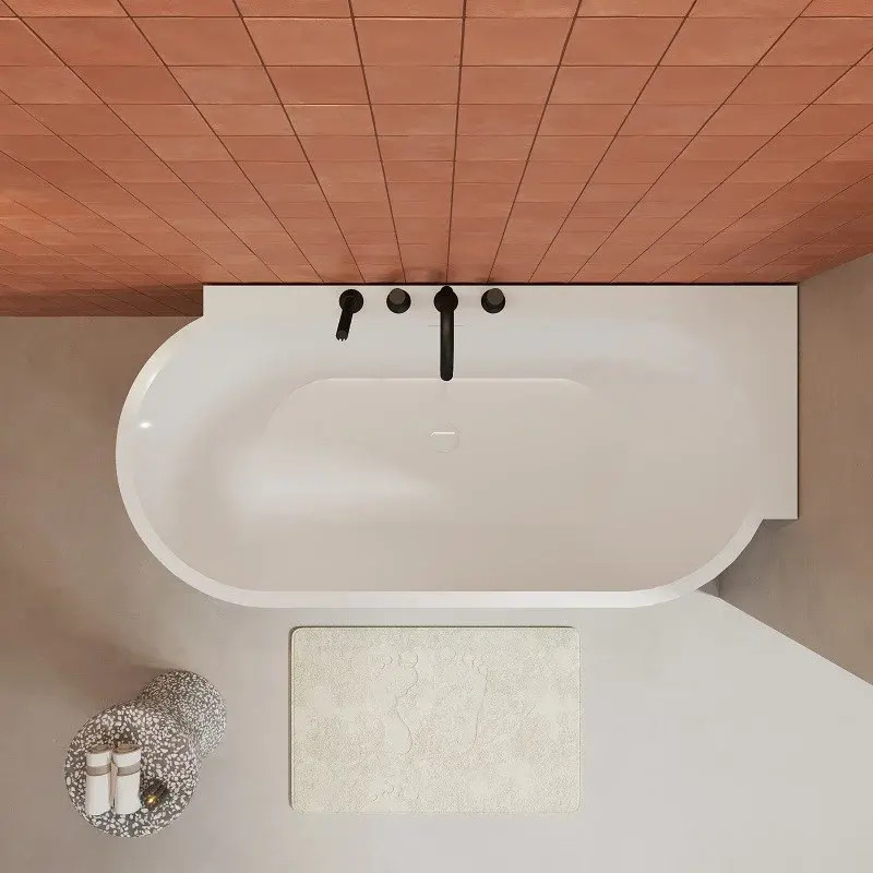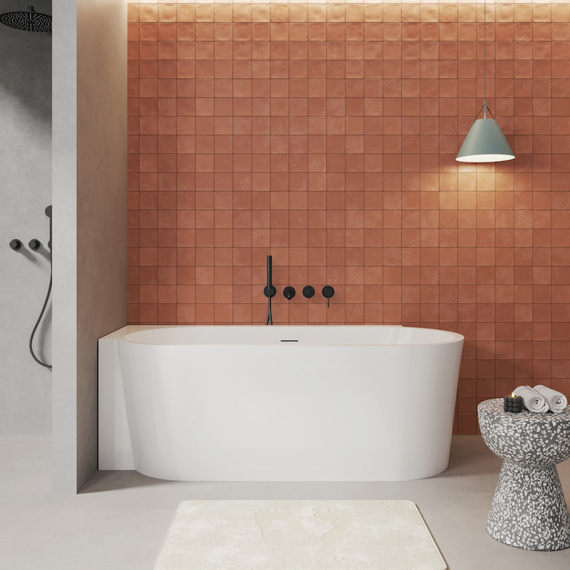 De achterkant van het bad is leeg, zodat uw loodgieter zonder problemen de benodigde aansluitingen kan maken en siliconen op de voegen kan aanbrengen.