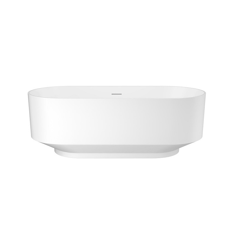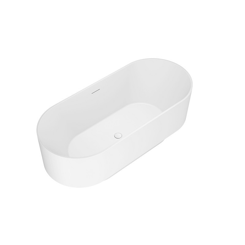 Liva, een vrijstaand bad van 170 cm in matwit acryl , belichaamt elegantie en verfijning in uw badkamer. Het nauwkeurig vervaardigde bad heeft een ovaal design en een slanke basis voor een zwevende indruk.