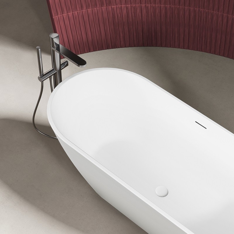 Dankzij het lichte materiaal kunt u dit vrijstaande bad ook op een parketvloer plaatsen.