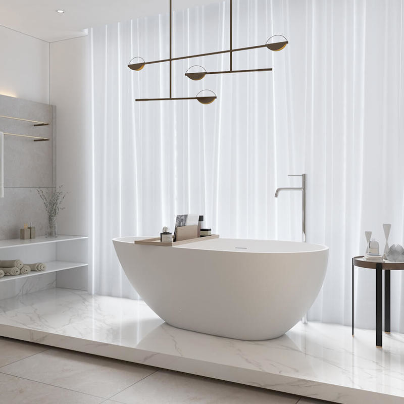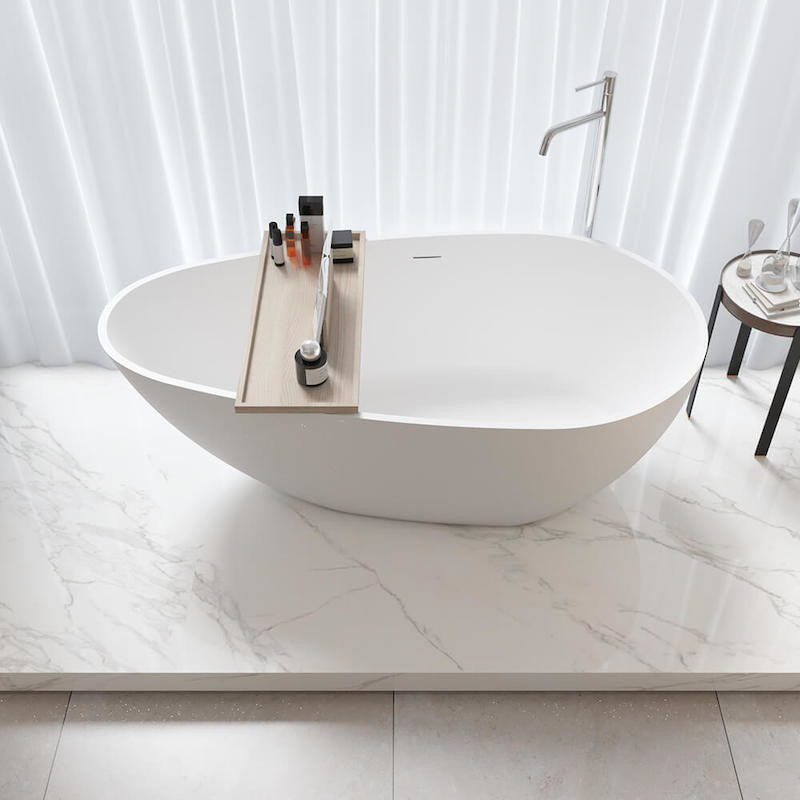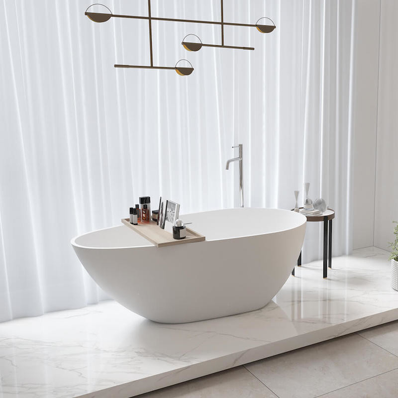 De elegante en trendy matte witte afwerking voegt een vleugje moderniteit toe aan uw badkamer en onderscheidt het bad van hoogglans witte vrijstaande acrylbaden.