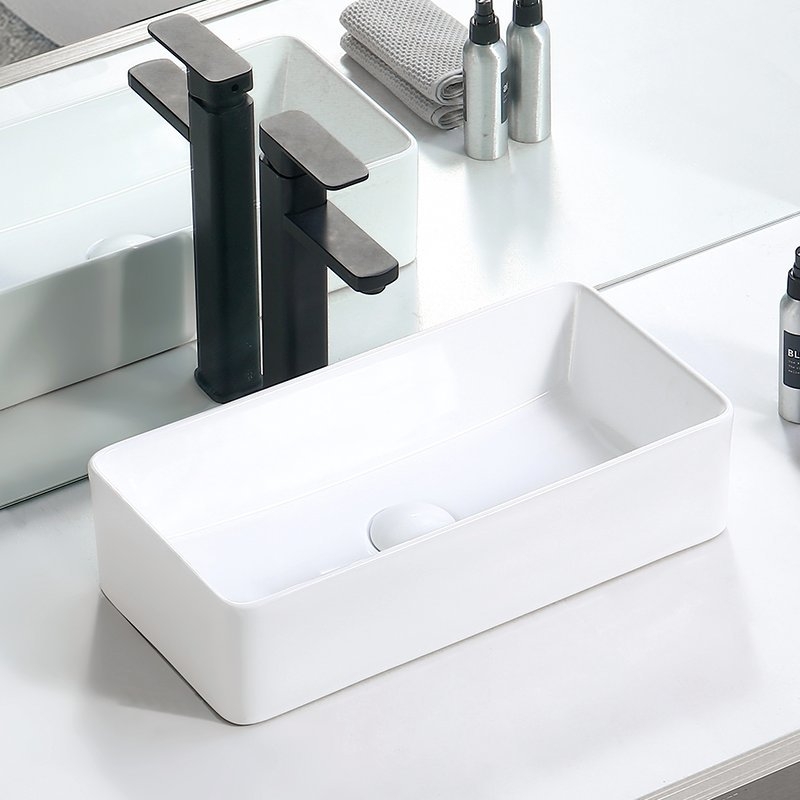 U zult dol zijn op de rechthoekige vorm van deze middelgrote opzetwastafel, met een afmeting van 23 tot 46 centimeter. Zonder brede randen biedt hij een werkelijk optimale capaciteit. Er is geen overloop.