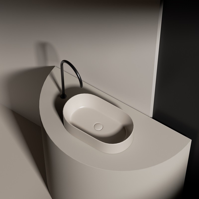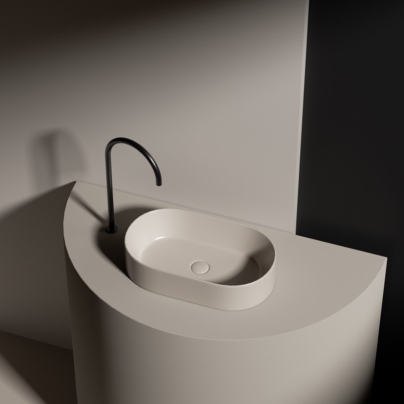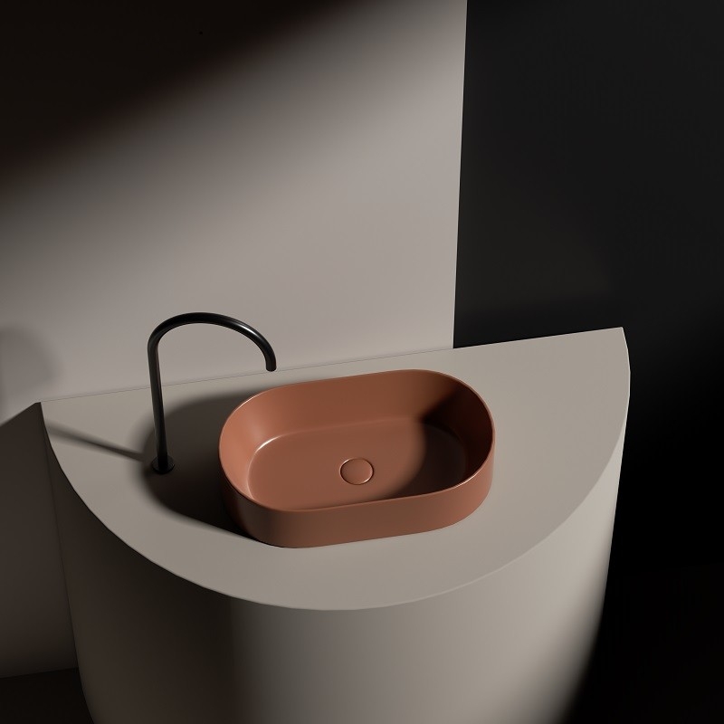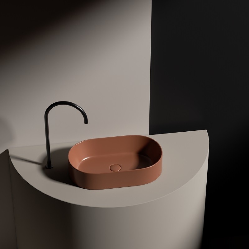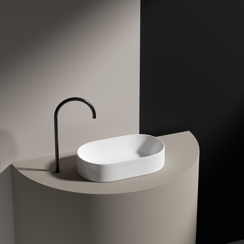 De Arc keramische wastafel, 6 mm dun, heeft een elegante en afgeronde ovale vorm. Verkrijgbaar in diverse trendy kleuren, past hij perfect in elk type badkamer. Met zijn royale afmetingen biedt hij optimaal gebruikscomfort en het strakke design combineert retro charme met moderniteit, waardoor hij een centraal element in uw badkamer vormt.