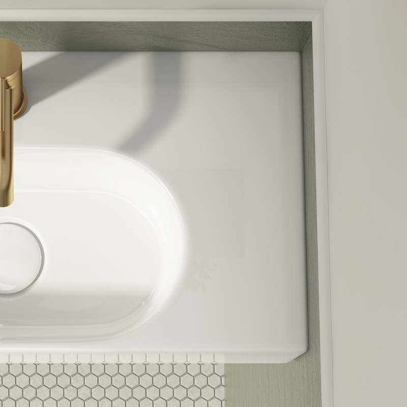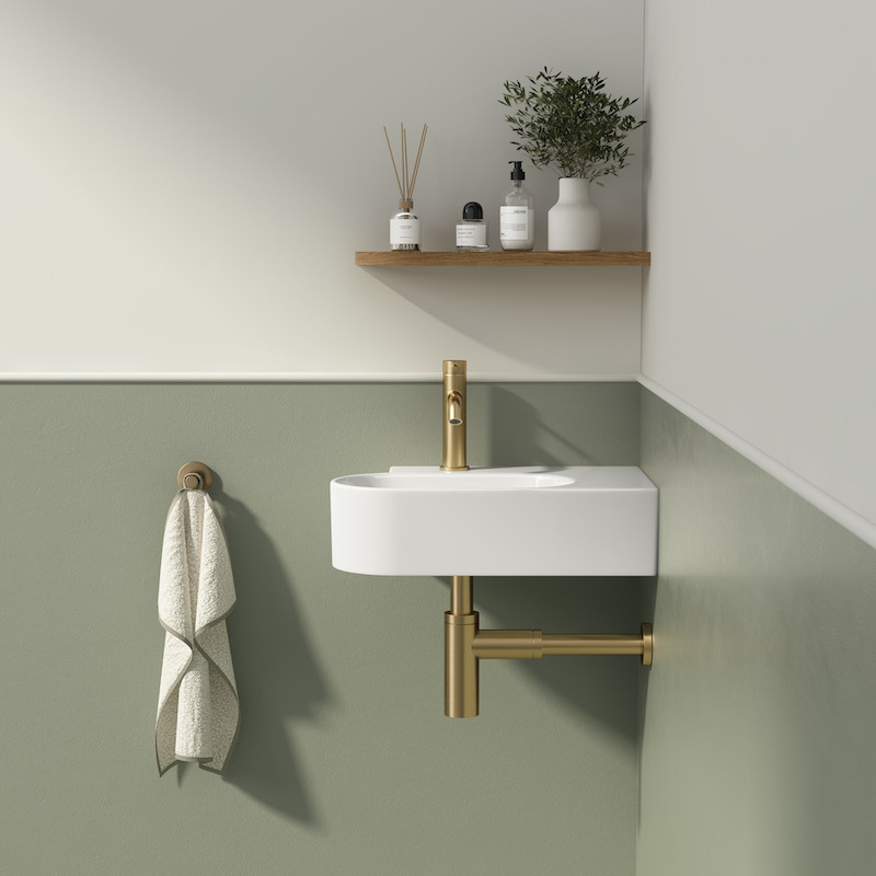 In een ruimte zo krap als een toilet is het plaatsen van een compacte wastafel essentieel om de ruimte te optimaliseren en tegelijkertijd een onberispelijke hygiëne te behouden. De Alcova wandwastafel in glanzend wit keramiek is de ideale oplossing voor krappe ruimtes.