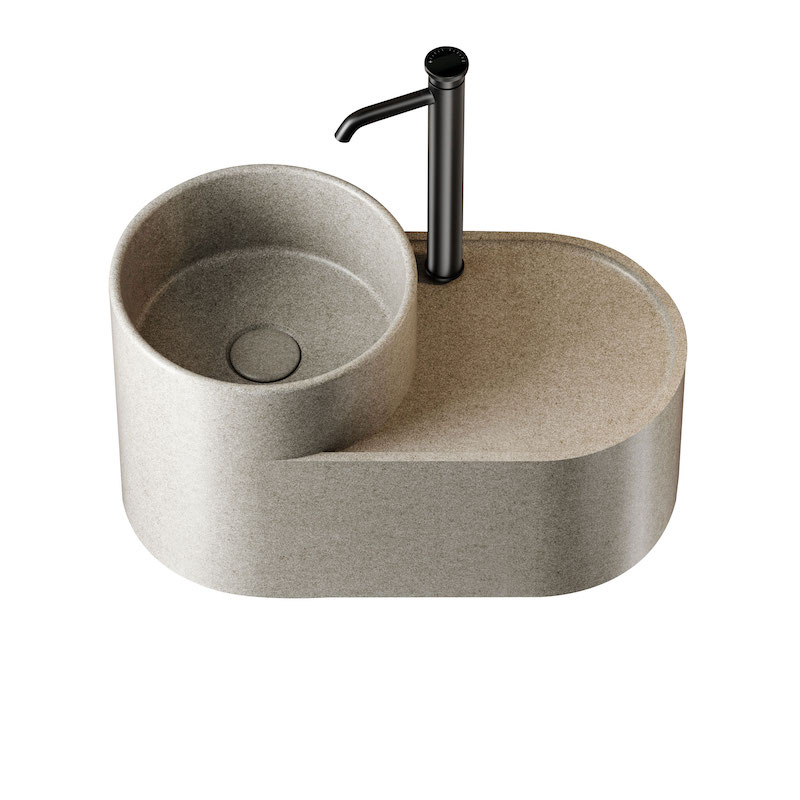 Met zijn compacte, ronde silhouet is de Halo fontein zowel esthetisch aantrekkelijk als functioneel voor kleine ruimtes. Hij is gemaakt van minerale hars, heeft een matte afwerking en een Mineral Beige-tint, een zacht, subtiel gepigmenteerd beige dat doet denken aan de natuurlijke texturen van zand of steen.