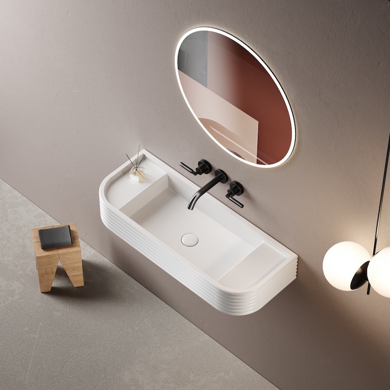 Pop wandwastafel, modern design en gecanneleerd reliëf