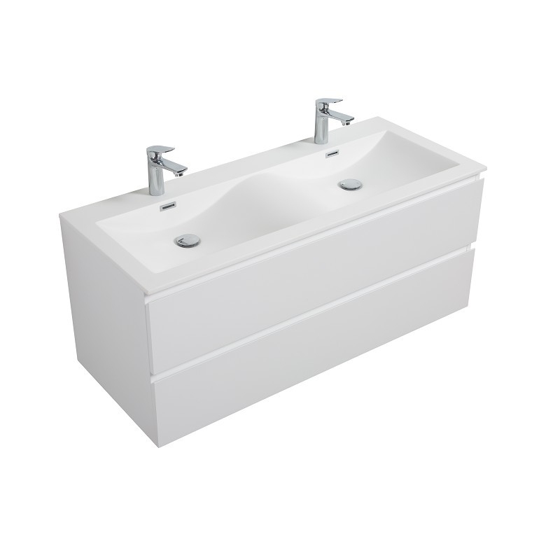 Op zoek naar een uniek en praktisch wastafelblad met twee spoelbakken van mineraalhars ? Zoek niet verder dan de 120 cm TAG1! Verkrijgbaar in drie kleuren: glanzend wit, mat wit en mat antraciet.