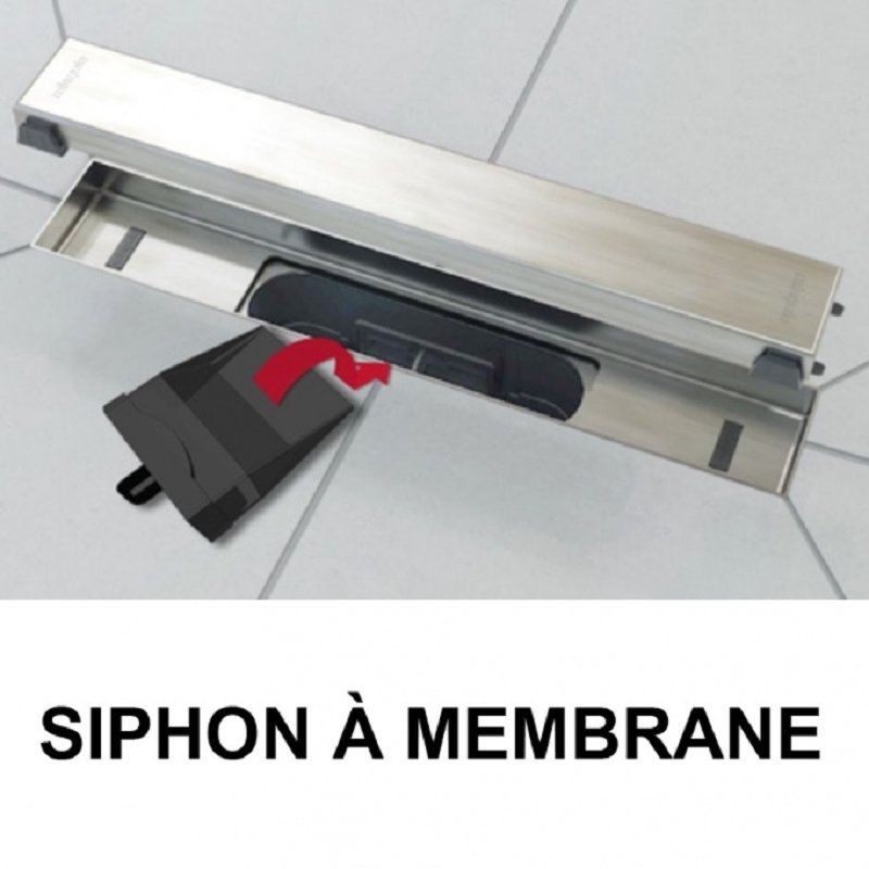 De goothoogte is slechts 50 mm onder de dekvloer, maar is voorzien van een variabel verstelsysteem van 50 tot 110 mm om zich aan te passen aan de configuratie van uw douche. Het geheel heeft 2 jaar garantie en is onderworpen aan de NF-productienormen.