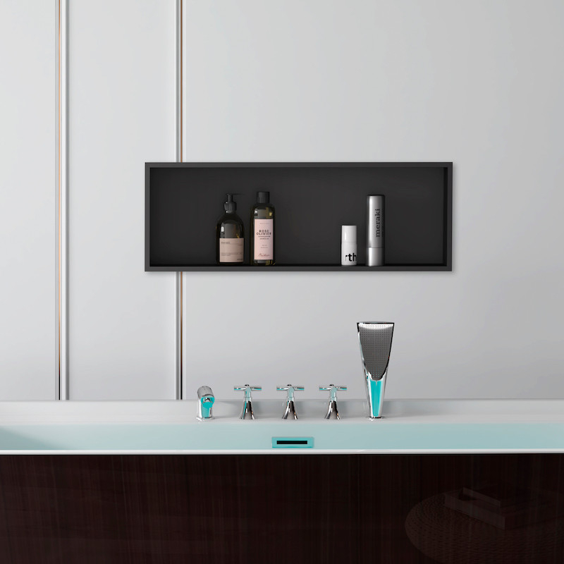 Haal het maximale uit uw aanrechtblad tijdens uw badkamerrenovatie door een matzwarte roestvrijstalen douchenis toe te voegen voor een nettere badkamer. De matzwarte inbouwnis is verkrijgbaar in twee maten: 30 cm en 60 cm.