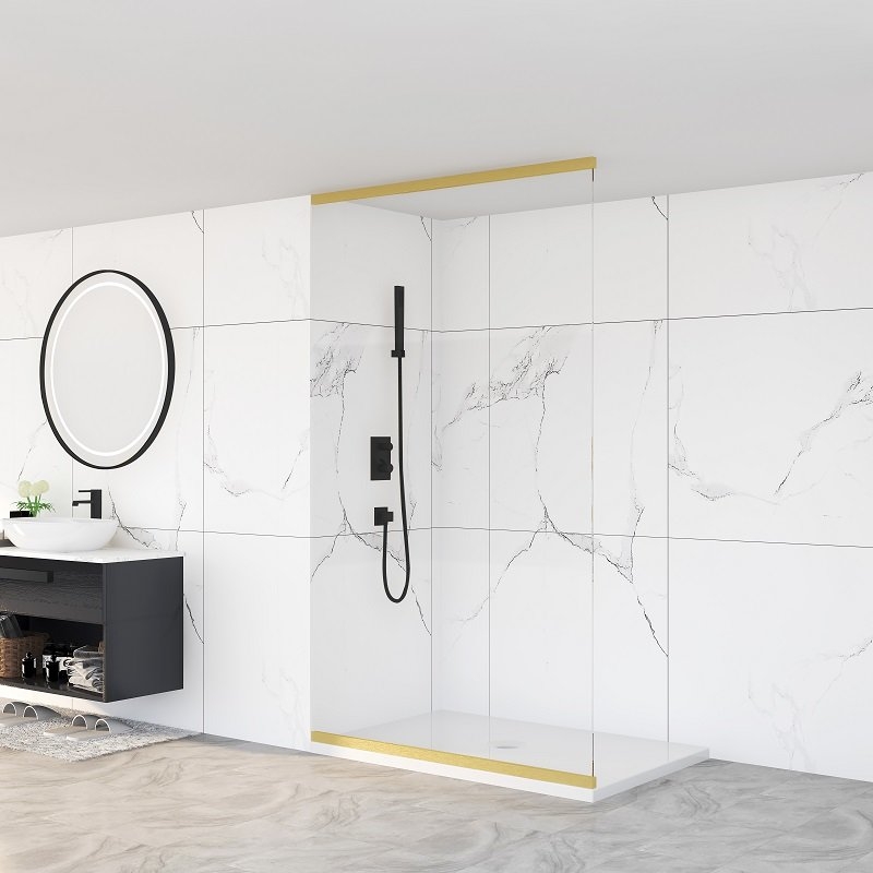 Daarom biedt Tots u een profiel aan in chroom, matzwart, geborsteld brons of geborsteld goudkleurig aluminium. Deze passen perfect in uw badkamer omdat ze door hun geringe dikte discreet zijn, maar toch een zeer moderne toets aan uw douche geven.