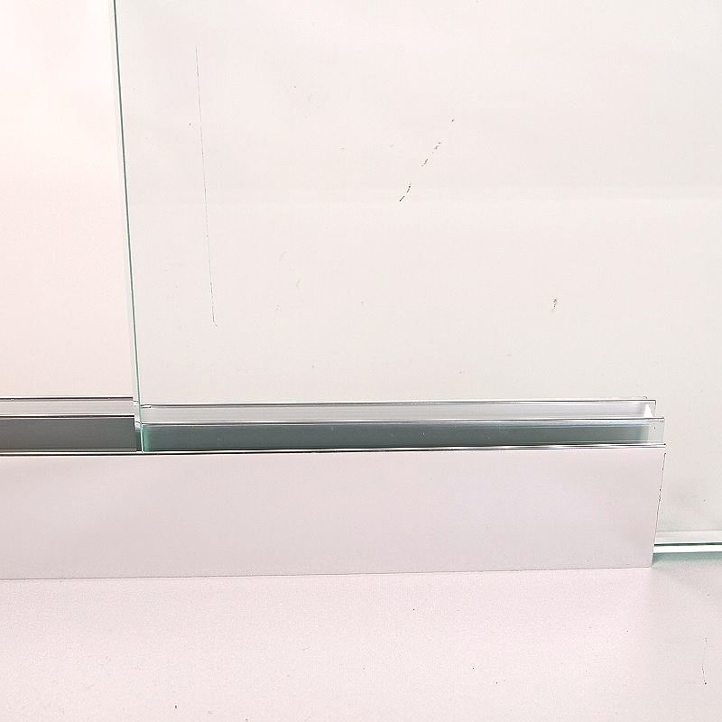 - Zoals u op de bovenstaande foto's kunt zien, heeft het profiel voor een douchewand met volledige hoogte niet dezelfde installatielocatie als een standaard vaste douchewand met een wandprofiel. Een douchewand met volledige hoogte moet in dit geval met twee profielen worden bevestigd: één aan het plafond en één aan de vloer.