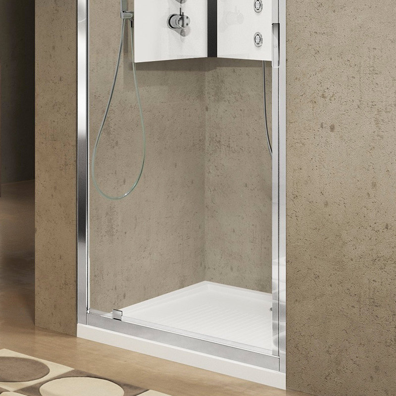 Door u afmetingen aan te bieden vanaf 60 cm breed en 190 cm hoog, krijgt u een kleine douchedeur met een volume dat u nergens anders vindt; en omgekeerd voor badkamers met een groot volume. Bovendien hoeft u bij een renovatie niet langer te prutsen, u vindt direct de geschikte maten voor de afwerking van uw project.
