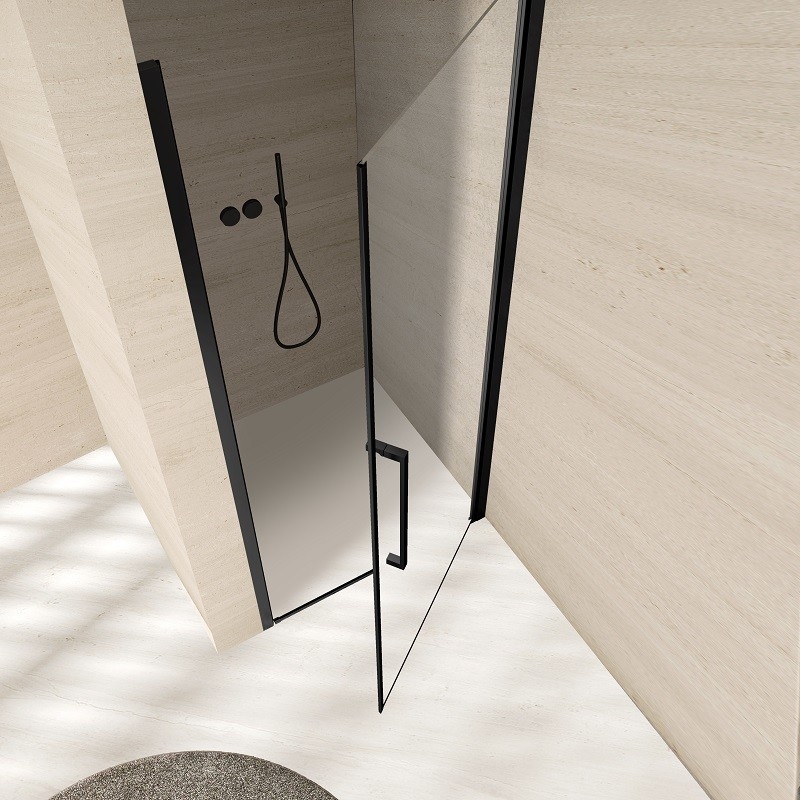Aarzel niet langer en transformeer uw doucheruimte in een comfortabele en gezellige plek Met deze Néra douchedeur in helder glas en zwart aluminium zult u de opening en het eenvoudige onderhoud elke dag waarderen.