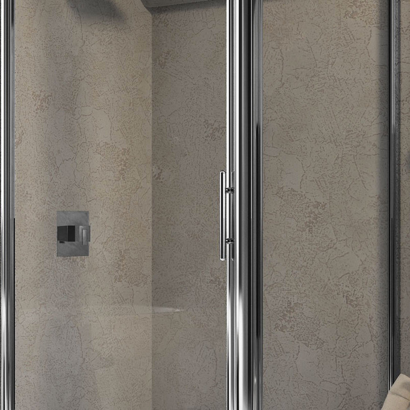 Deze wand is compatibel met de op maat gemaakte Lunes G draaideur voor douches, verkrijgbaar in breedtes van 60 tot 102 cm en hoogtes van 160 tot 200 cm. Deze naar buiten draaiende draaideur is voorzien van twee verspringende scharnieren, wat rommel voorkomt bij het openen van de deur, vooral in een kleine ruimte.