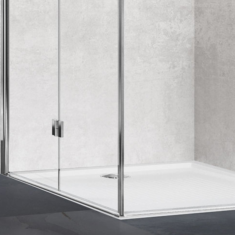 De draaideur zorgt er namelijk voor dat er minimale ruimte nodig is, omdat hij de badkamer niet in beslag neemt. Bovendien is deze hoekdouche verkrijgbaar in verschillende afmetingen, variërend van 68 tot 100 cm voor het douchescherm en van 67 tot 99 cm voor het vaste scherm. Zo hoeft u alleen de afmetingen te kiezen die bij u passen voor een volledig gepersonaliseerde douche, afgestemd op de grootte van uw badkamer.