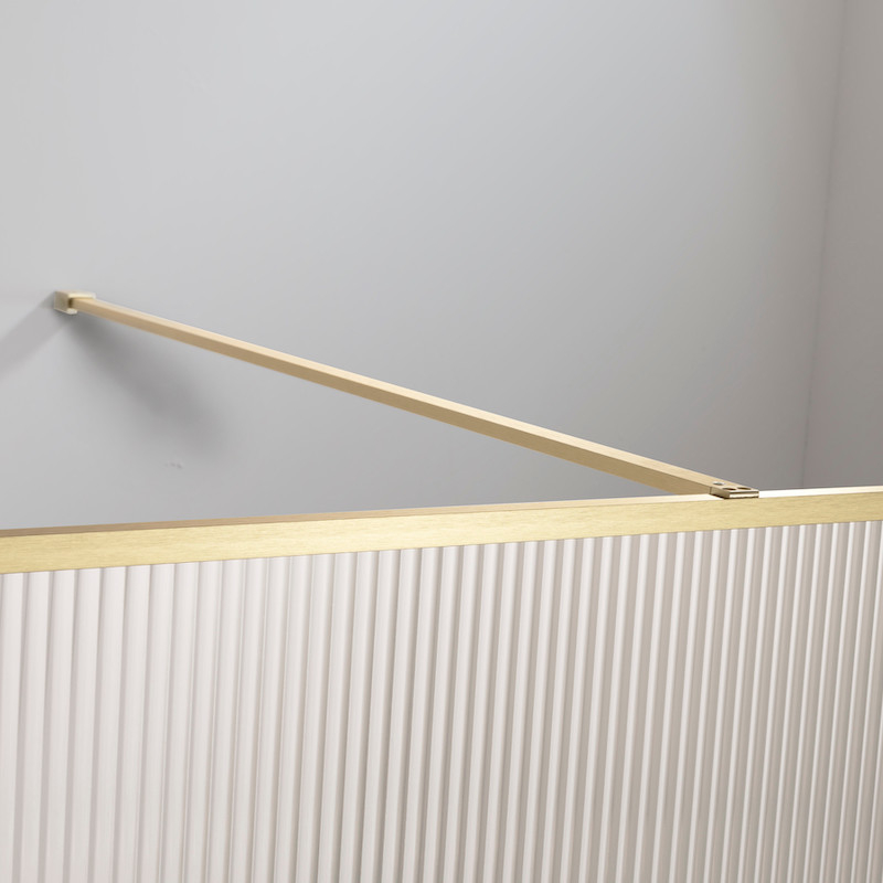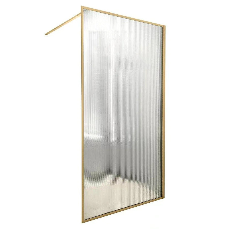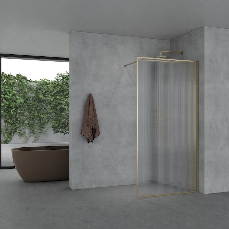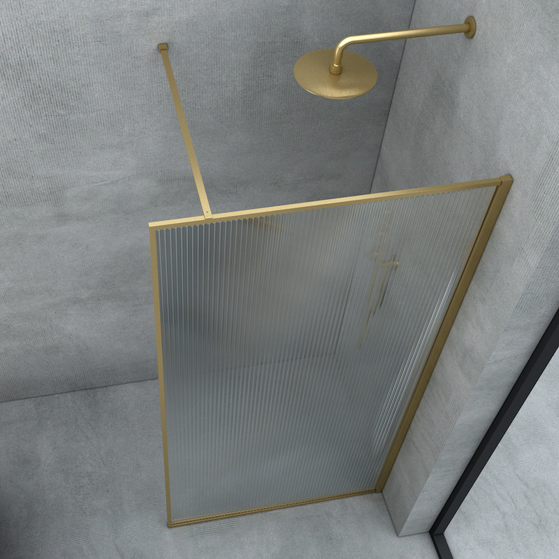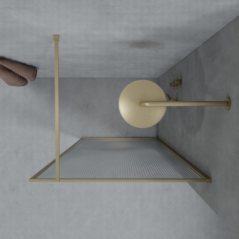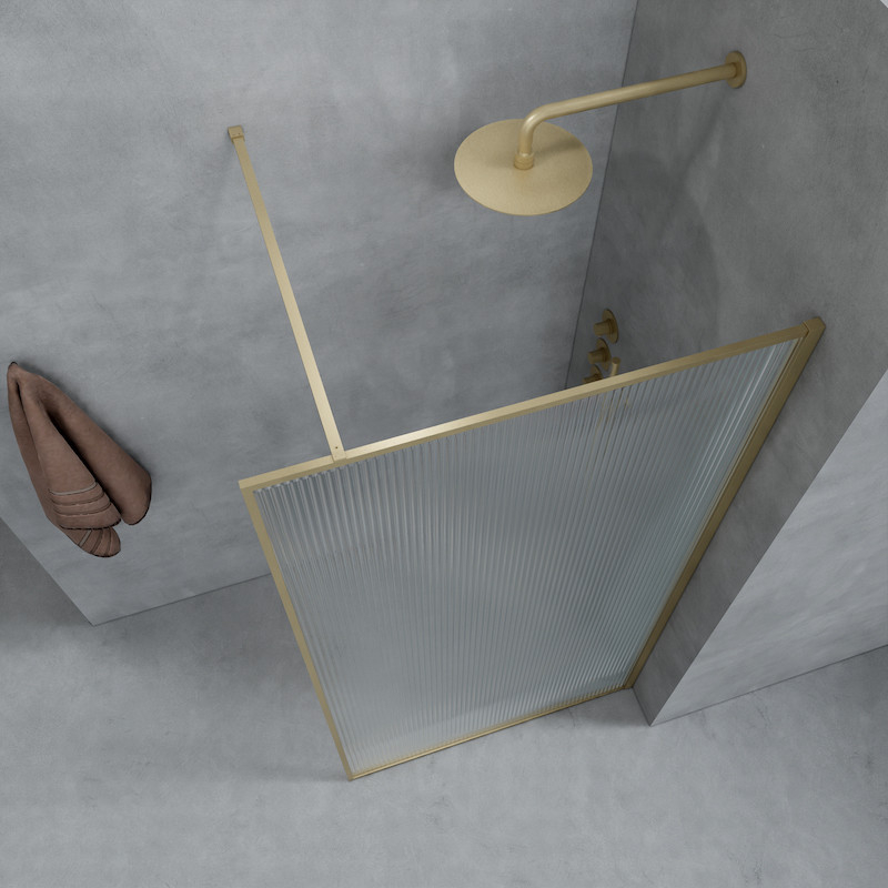 Deze Luxor douchewand is verkrijgbaar in twee trendy kleuren: geborsteld goud en matzwart. Het golvende glas zorgt met zijn verticale lijnen voor een uitgesproken vintage stijl.