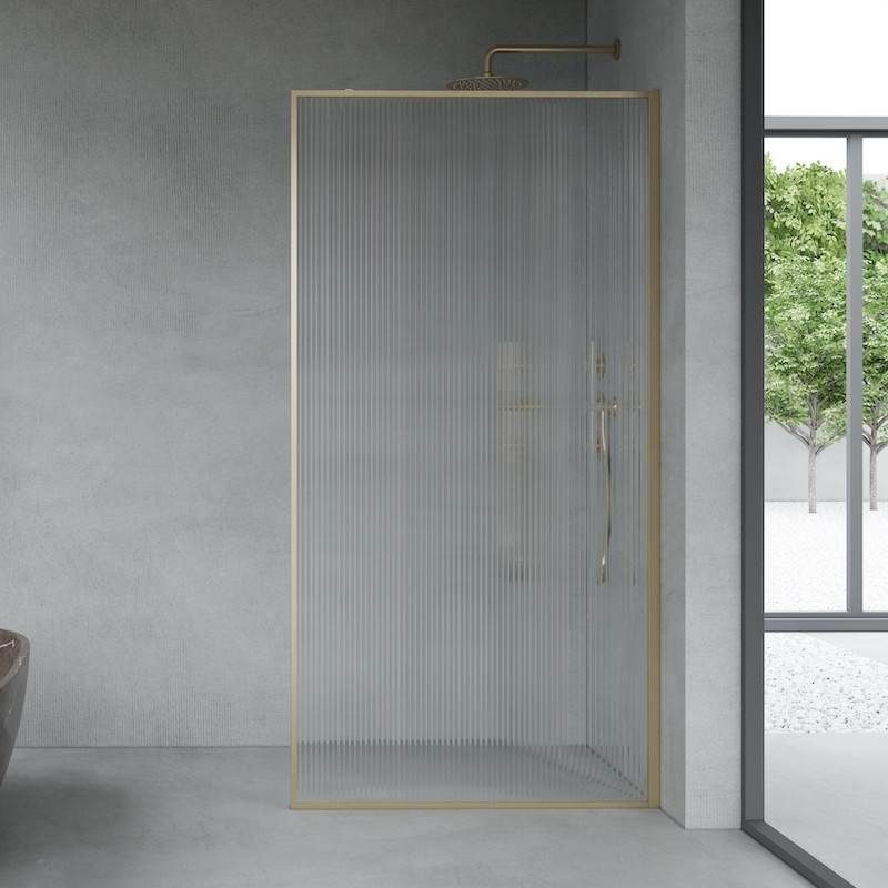 Voor wie een chique en ultra-design badkamer wenst, is de Luxor wand in geborsteld goud of mat zwart, met gecanneleerd glas, een ideale keuze.