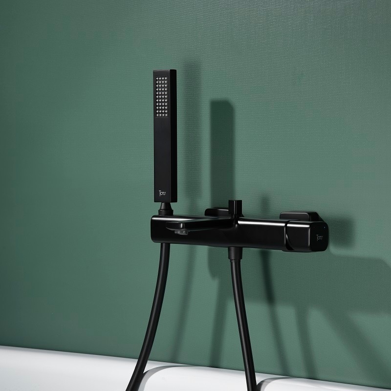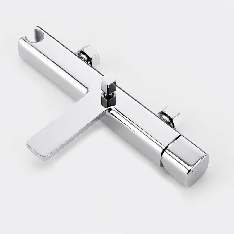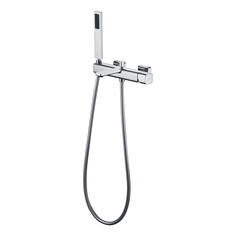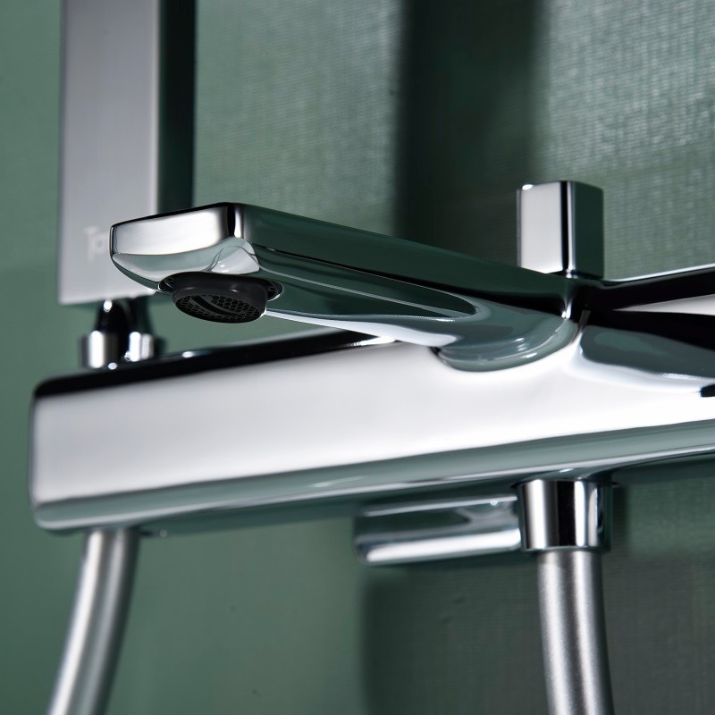 De Slim bad- en douchemengkraan heeft een vierkante vorm met zacht afgeronde hoeken. Het elegante design wordt gecompleteerd door een ergonomische handgreep waarmee u zowel de waterstroom als de temperatuur nauwkeurig en intuïtief kunt regelen.