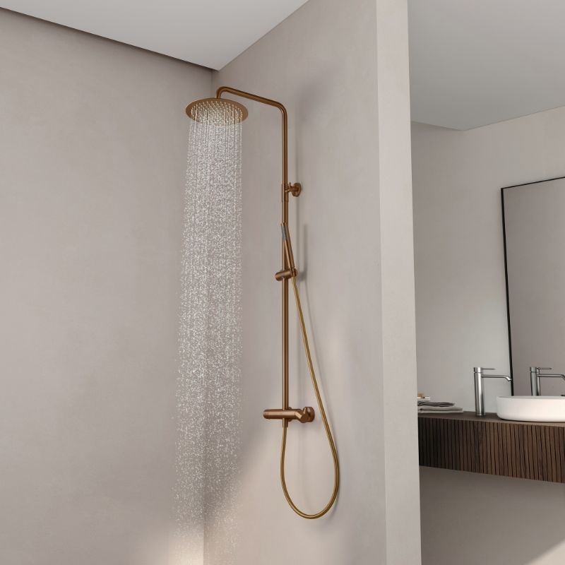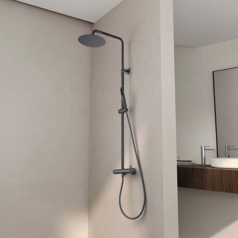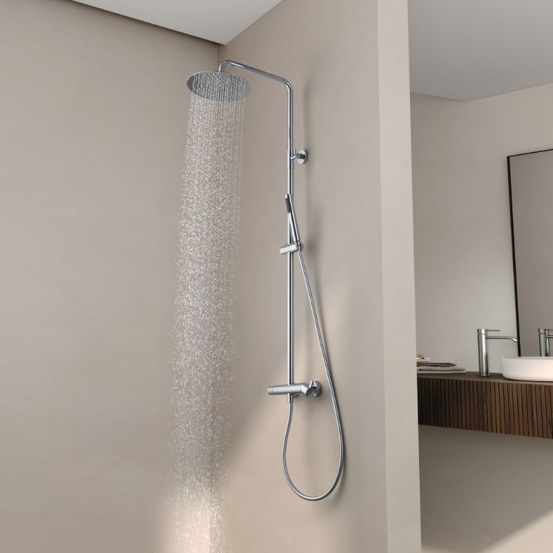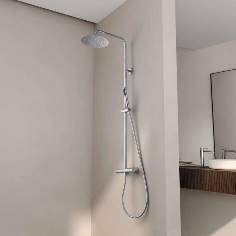 De Cezela mechanische douchekolom is voorzien van een eenvoudige en betrouwbare mengkraan, een regendouchekop van 25 cm en een duurzame afwerking, verkrijgbaar in vier kleuren.