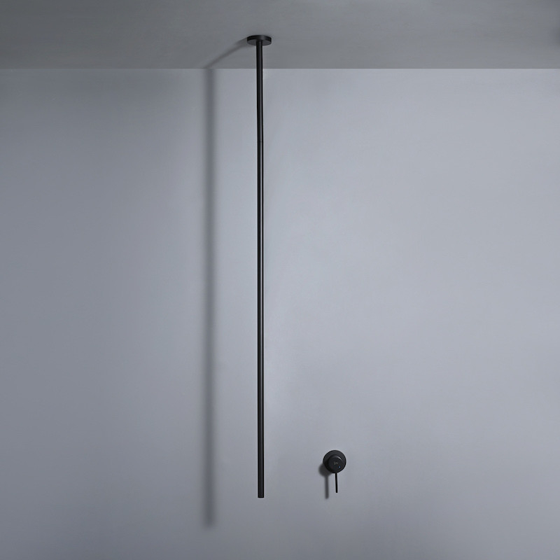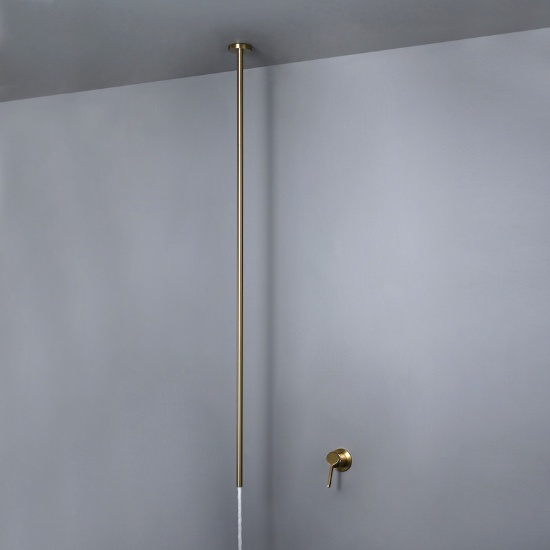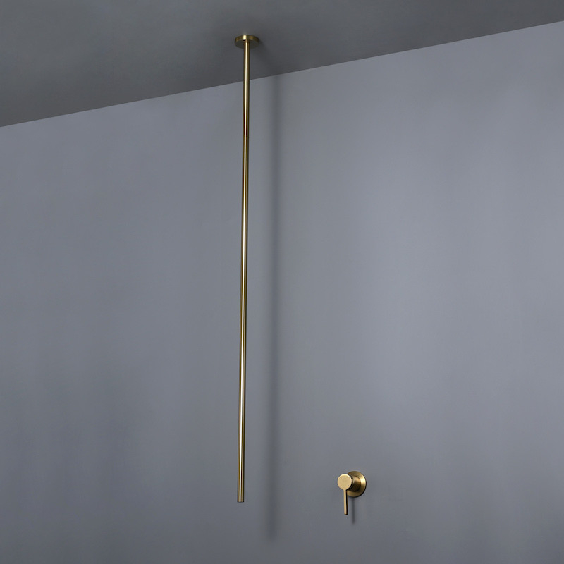 Ontdek de Cezela plafondmengkraan van 130 cm: elegantie, moderniteit en duurzaamheid. Gemaakt van massief messing, verkrijgbaar in matzwart of geborsteld goud. Transformeer je badkamer in stijl.