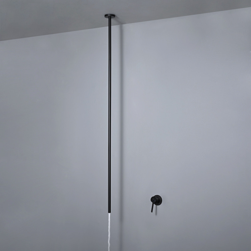 De 130 cm lange plafonduitloop heeft een vaste hoogte die ideaal is voor plafonds van standaardafmetingen, met een ultra-minimalistische buis met een diameter van 1,8 cm.