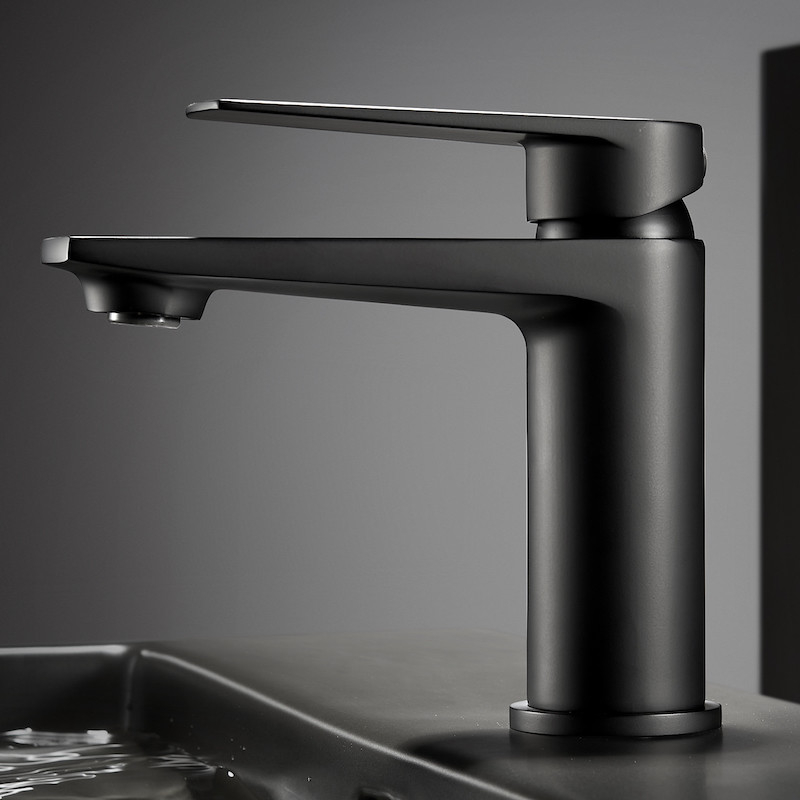 De Flat wastafelmengkraan, verkrijgbaar in glanzend chroom, matzwart en geborsteld goud, combineert elegant design met robuustheid. Gemaakt van massief messing, biedt hij duurzaamheid en stevigheid. Het cilindrische ontwerp met rechthoekige handgreep en uitloop past perfect bij opzetwastafels en biedt comfort en stijl.