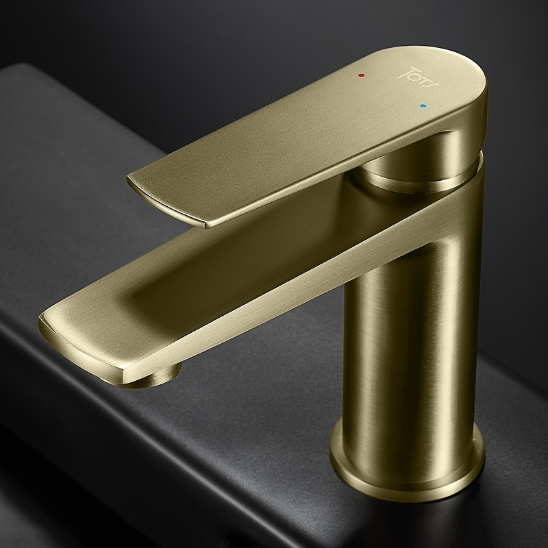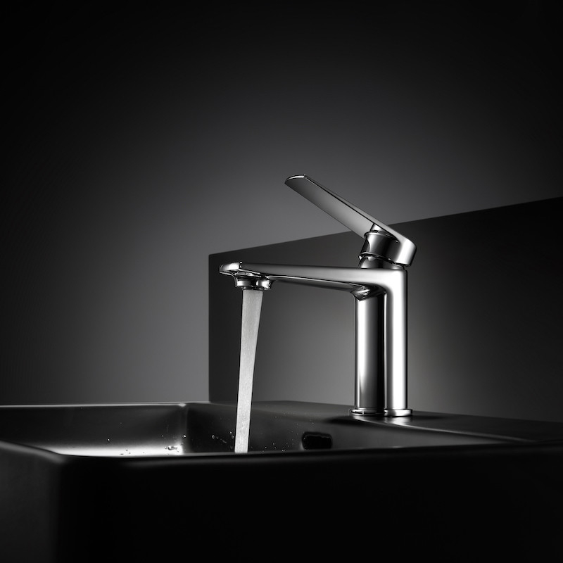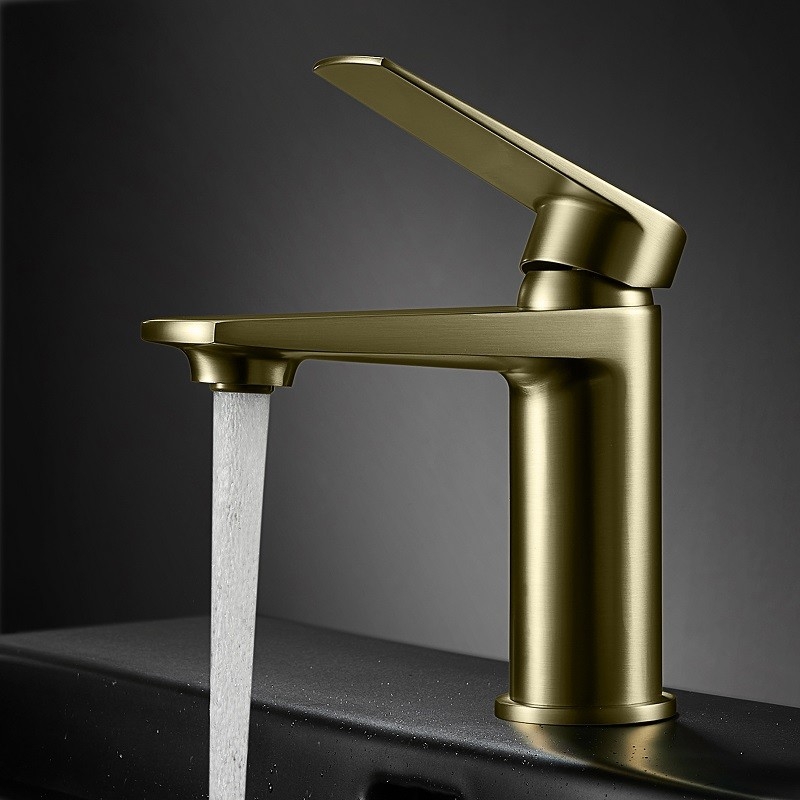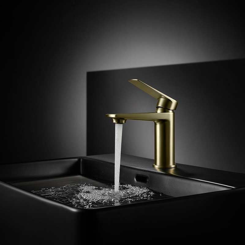 Deze badkamerkraan van massief messing combineert tijdloze lijnen en opmerkelijke finesse met een tijdloos en minimalistisch design. De esthetiek combineert harmonieus ronde en vierkante vormen, met een cilindrische body en handgreep en een rechthoekige uitloop.