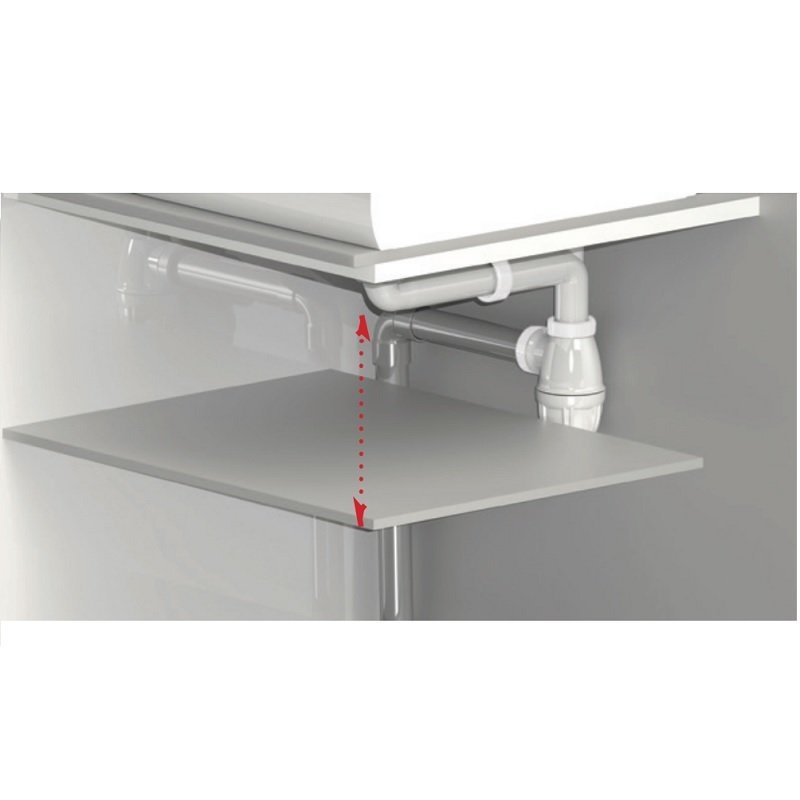 Om ruimte onder de gootsteen te besparen, kunt u met de ruimtebesparende afvoerbuis van Valentin de afvoer naar achteren verplaatsen. Dit is ook erg handig voor gootstenen die toegankelijk zijn voor mensen met beperkte mobiliteit.