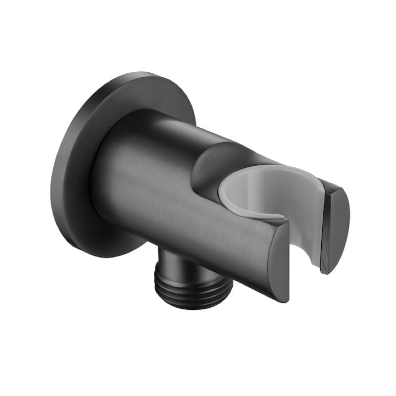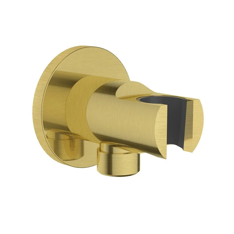De massief messing wandhouder voor ronde metalen douchekoppen is onderhoudsvriendelijk en eenvoudig aan de muur te bevestigen. Verkrijgbaar in 6 verschillende kleuren.