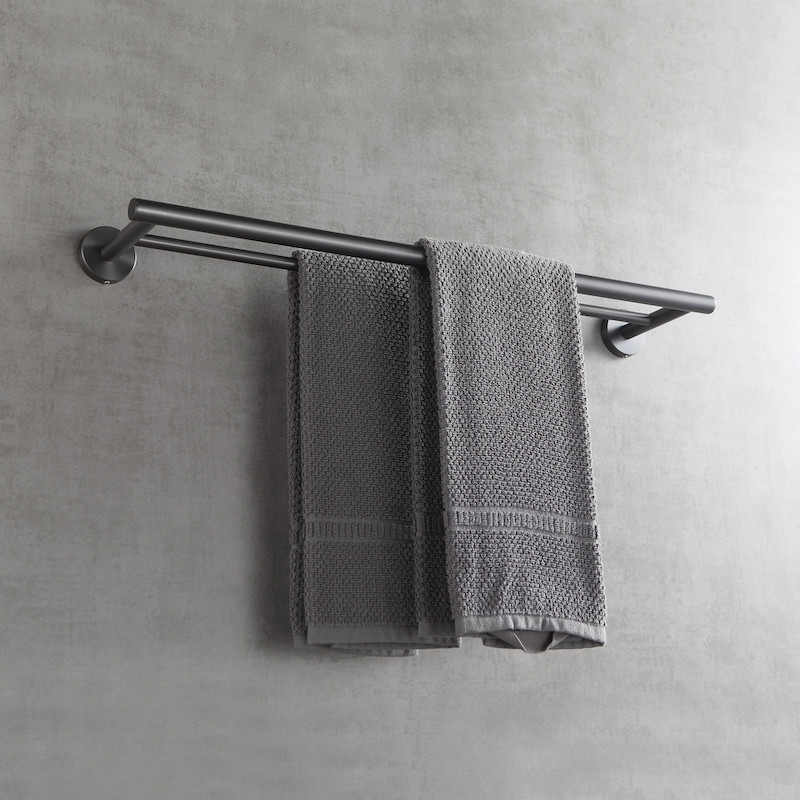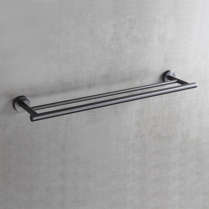 Dubbele handdoekhouder van roestvrij staal in gun metal