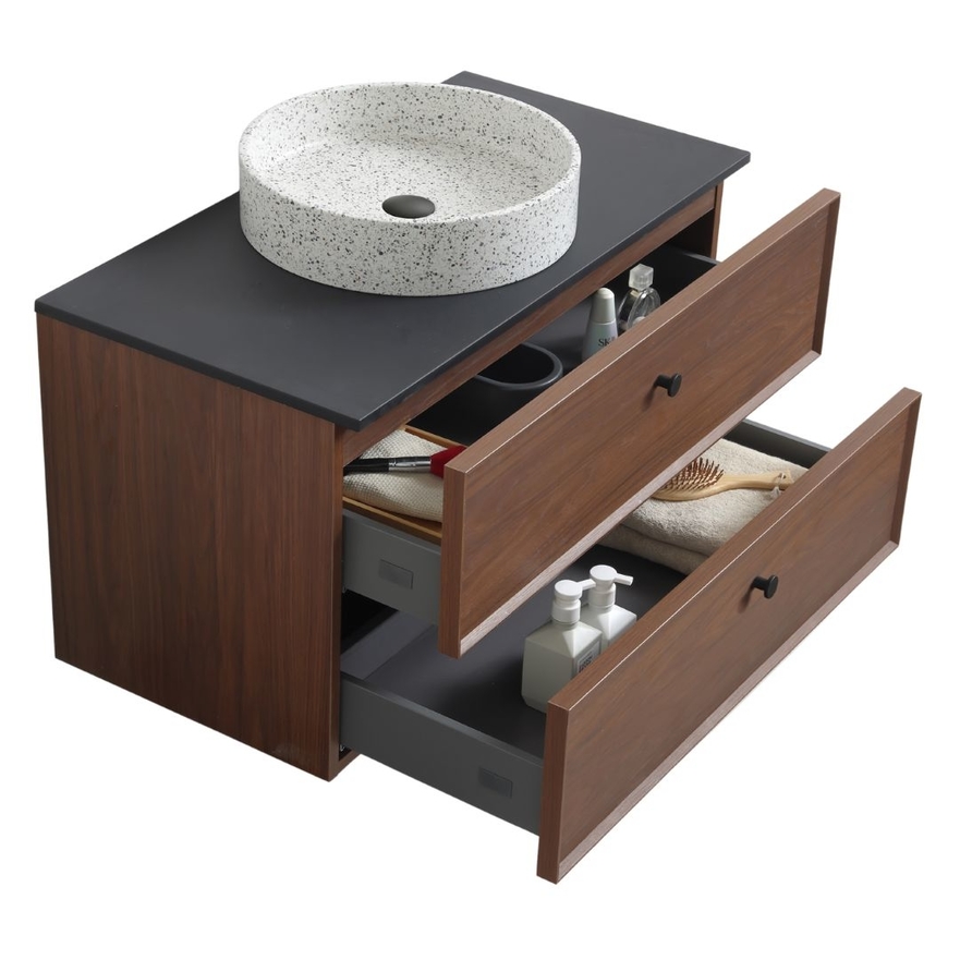 De Borda Petit is gemaakt van MDF met hoge dichtheid en is duurzaam en vochtbestendig. De twee stevige metalen lades bieden optimale opbergruimte en gaan soepel open dankzij het softclose-systeem.