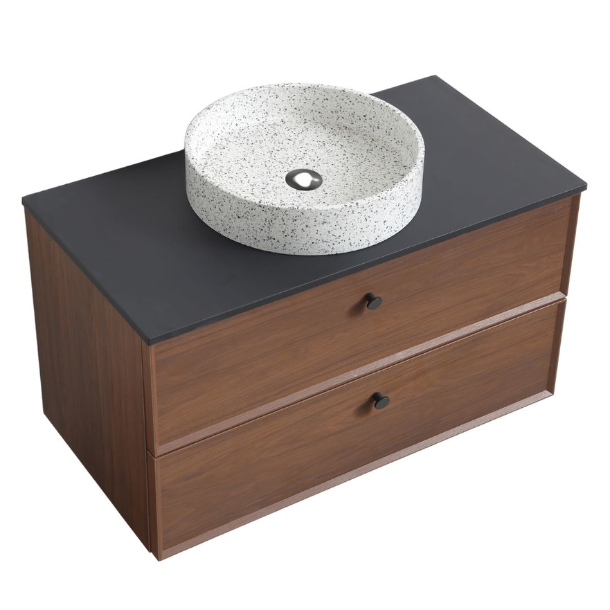 Qua uitrusting kunt u kiezen uit: een werkblad van kunsthars (mat wit of mat zwart), waarin niet is geboord voor de installatie van een wand- of bladkraan, of een waskom van kunsthars (glanzend wit, mat wit of mat zwart), waarin al is geboord voor de installatie van een mengkraan.