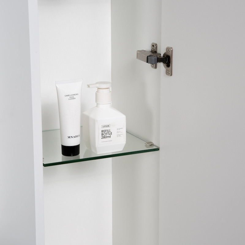 Deze drie opbergvakken zijn diep genoeg om uw badtextiel in te stapelen of uw cosmetische producten rechtop te zetten: alles is in één oogopslag zichtbaar en direct toegankelijk.