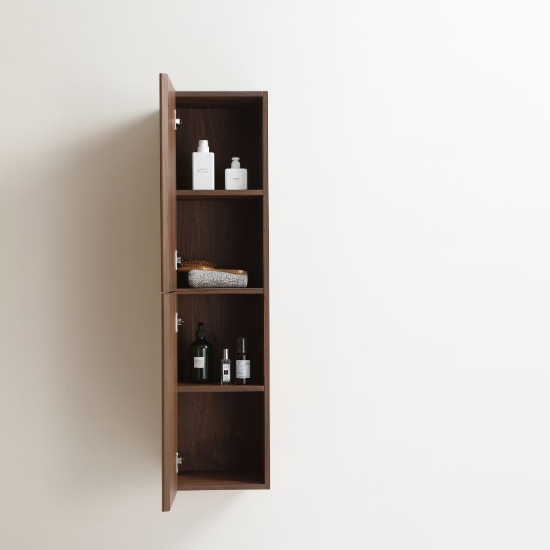 De Tosca opbergkast combineert esthetiek met functionaliteit. Gemaakt van massief walnotenhout, maximaliseert hij de opbergruimte zonder je badkamer rommelig te maken en is hij bovendien zeer vochtbestendig.