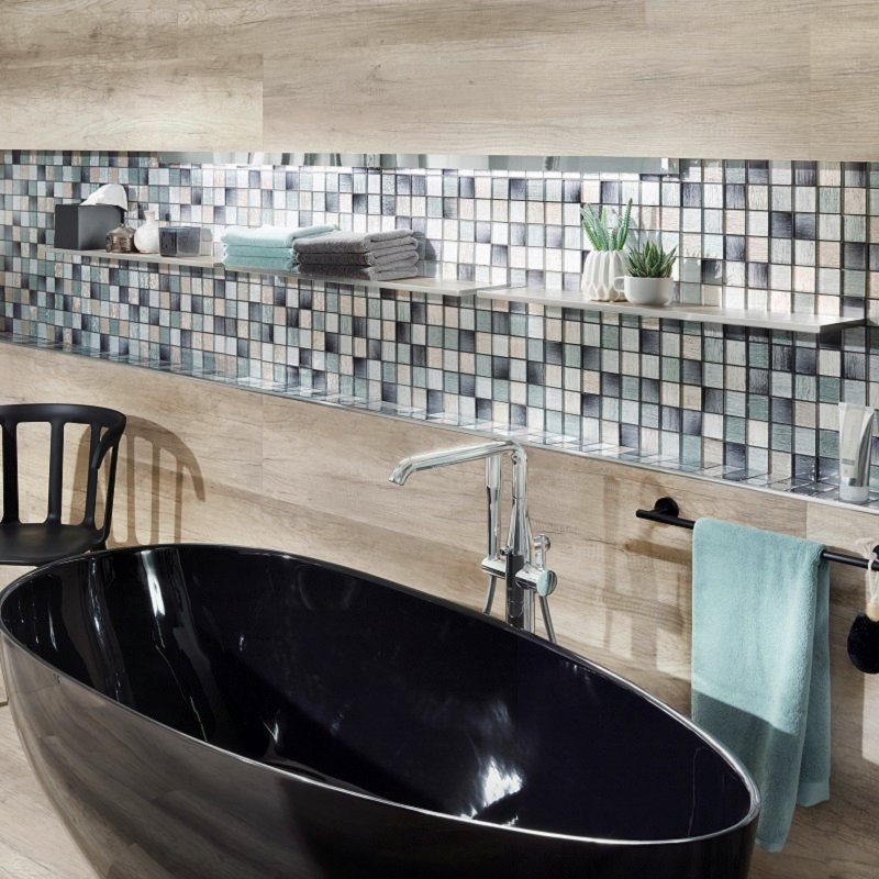 De rechthoekige betegelde doucheplank maakt gebruik van hetzelfde systeem als de tegelafwerkingsprofielen, die bij de installatie met lijm worden verzegeld, waardoor één geheel ontstaat en een belasting van 10 kilo kan dragen.