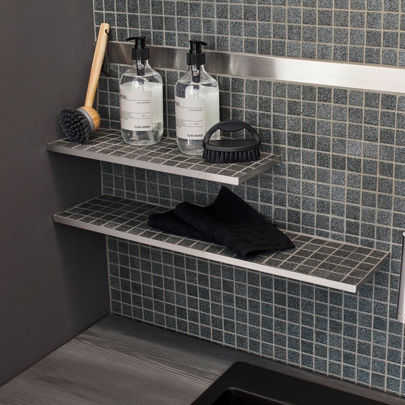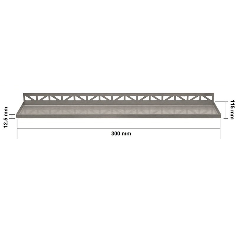 Hij is gemaakt van roestvrij staal en de bovenkant van deze plank is betegelbaar voor een uniek en verfijnd design. Hij is slechts 11,5 cm breed, zodat hij niet storend is voor het visuele aspect, maar ook voor uw doucheruimte.