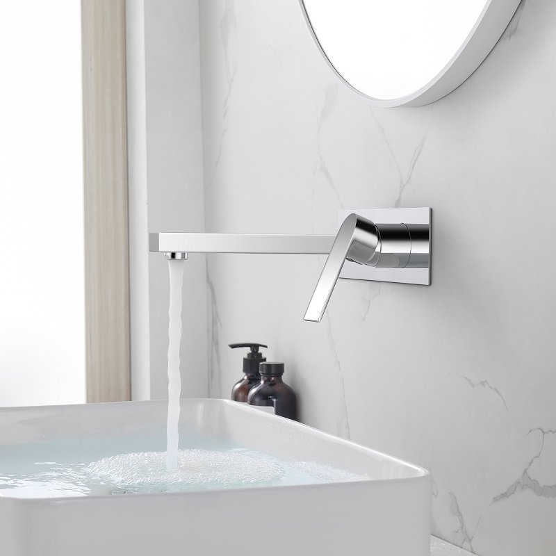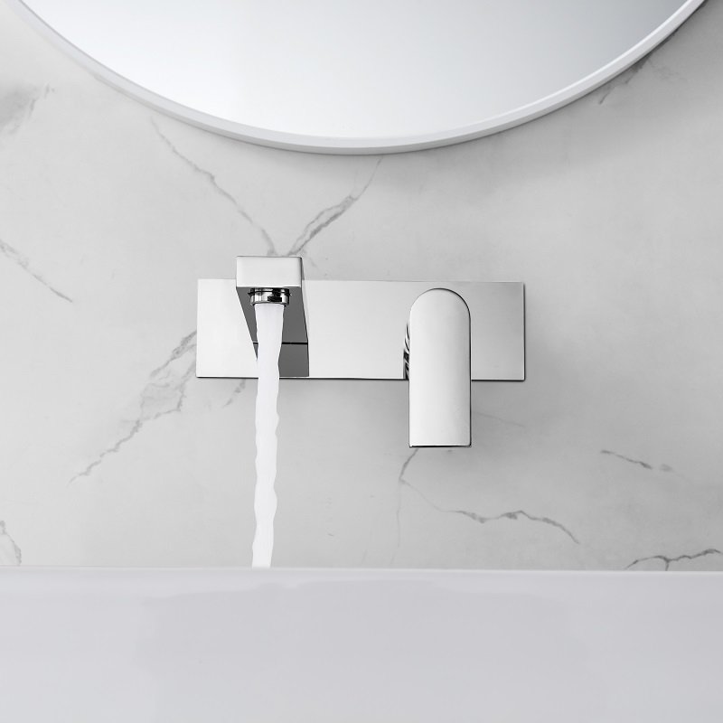 Deze wandgemonteerde wastafelkraan combineert esthetiek en functionaliteit. De ingetogen vorm past bij elke badkamerstijl.