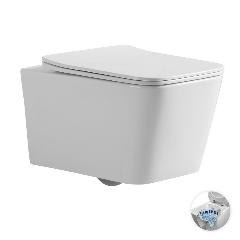 Ontdek onze randloze wandcloset, vierkant en recht, uitgevoerd in glanzend wit porselein. Hij is voorzien van een softclose zitting, geschikt voor elk type onderstel. Bovendien zorgt de antikalk- en antibacteriële behandeling van de toiletpot voor eenvoudig dagelijks onderhoud.