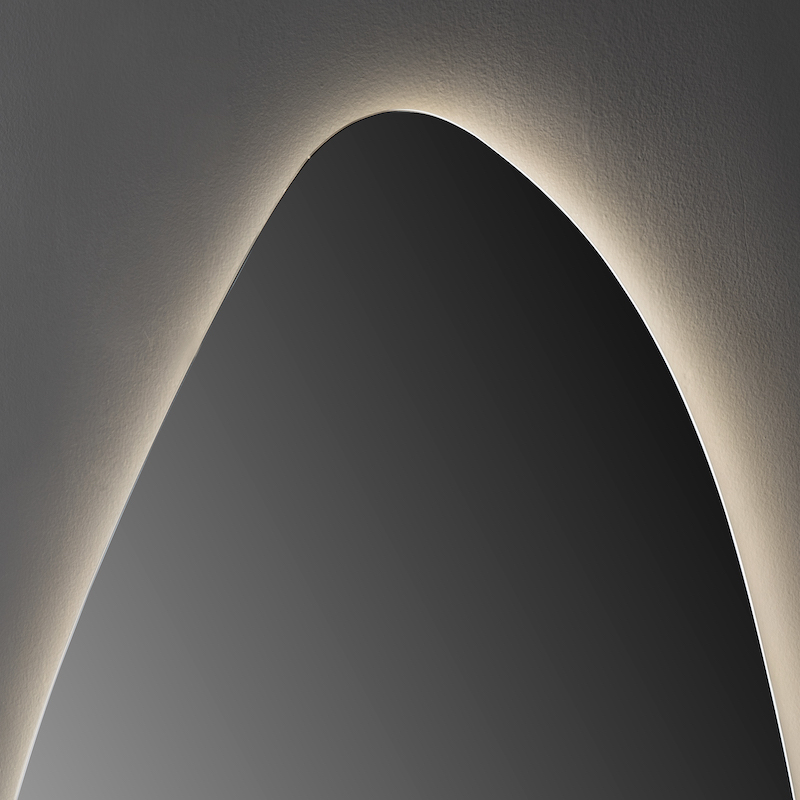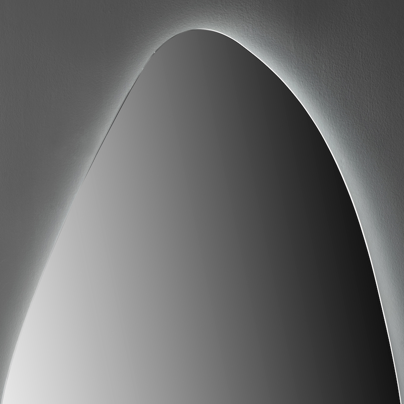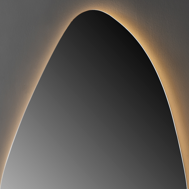 De druppelvormige ledspiegel valt op door zijn zachte, vloeiende rondingen. Met een breedte van 65 cm en een hoogte van 90 cm past hij perfect bij de meeste badkamermeubels.