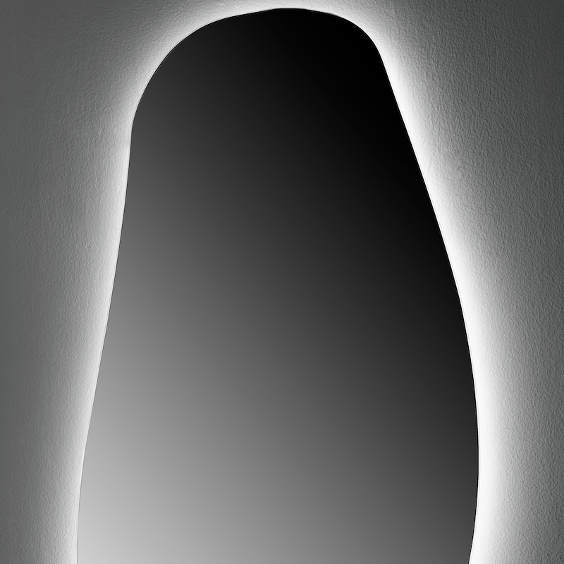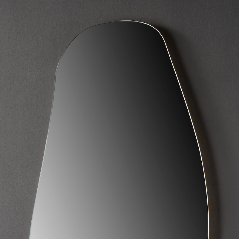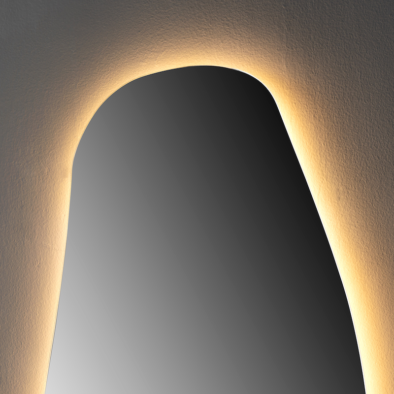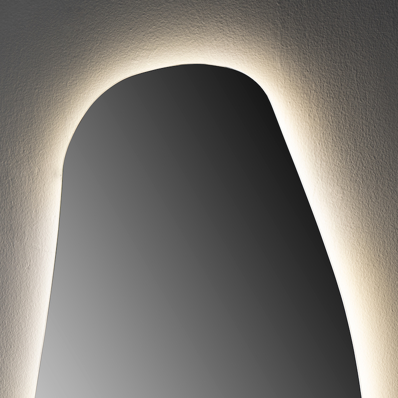 Bent u op zoek naar een design LED-spiegel? Flow, met zijn organische verticale vorm van 50 x 100 cm, biedt drie lichtkleuren.