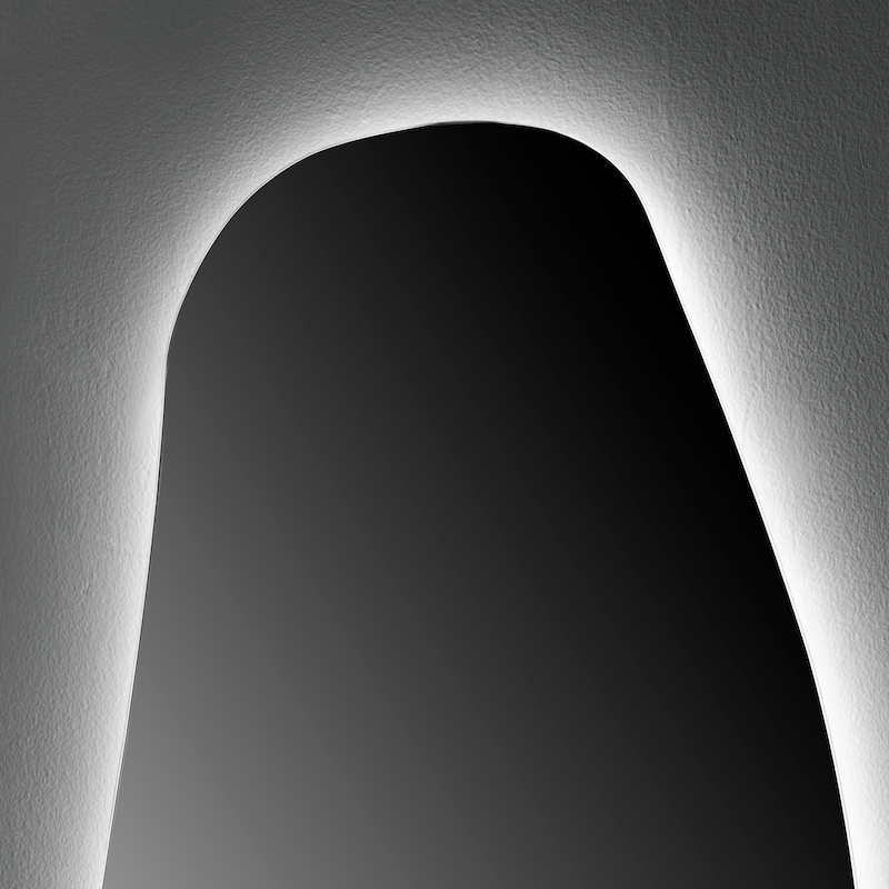 De Flow LED-spiegel valt op door zijn verticale, organische vorm en vloeiende contouren. Verkrijgbaar in een compact formaat van 50 x 100 cm, kan hij afzonderlijk boven een wastafelmeubel met één wasbak worden geïnstalleerd of in paren als aanvulling op een dubbele wasbak.