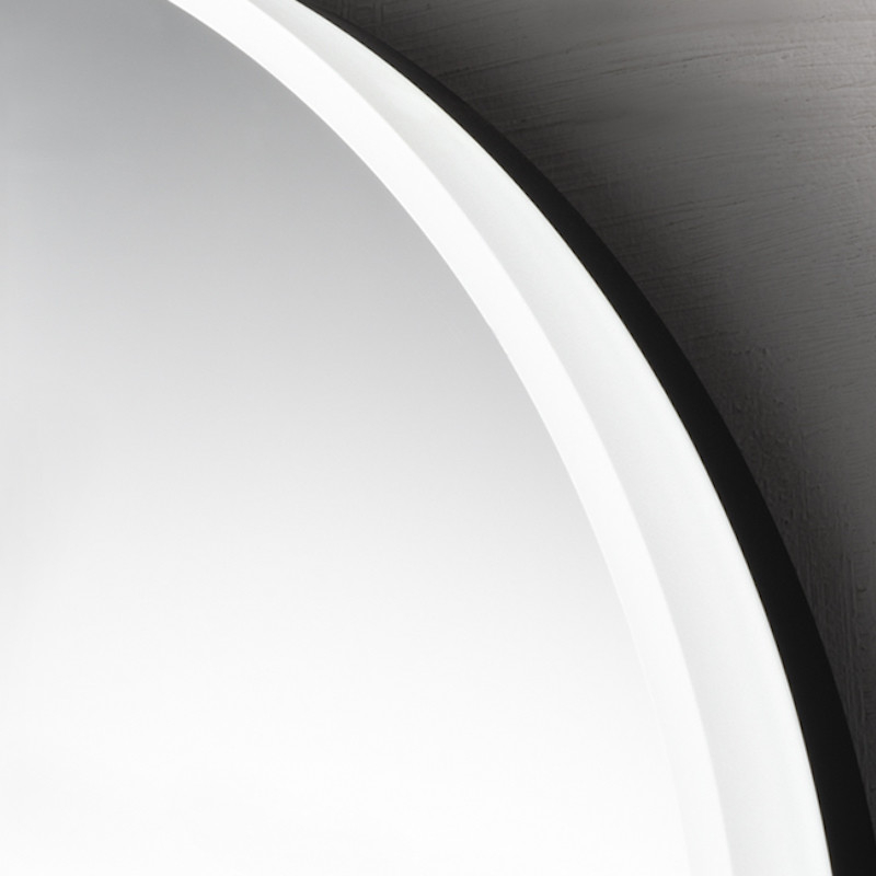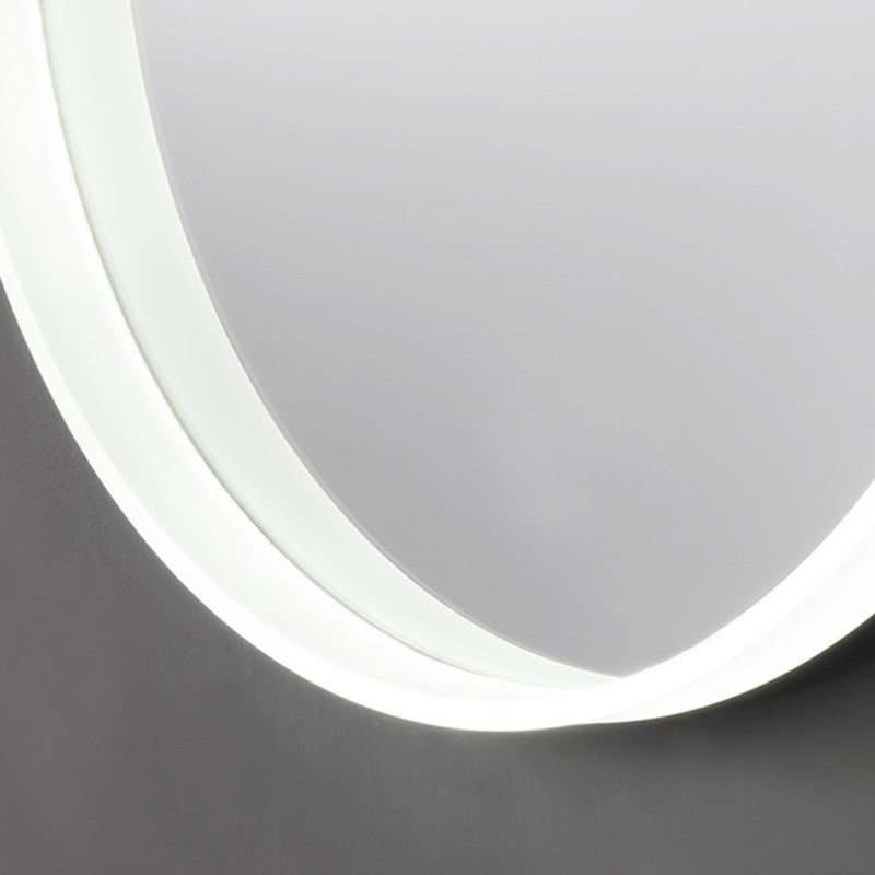 De Solar badkamerspiegel is een grote, ronde spiegel met een diameter van 80 cm en is voorzien van zelfreflecterende hars om het licht te verspreiden en de led te versterken. De rand is 7 cm voor een harmonieuzer volume.