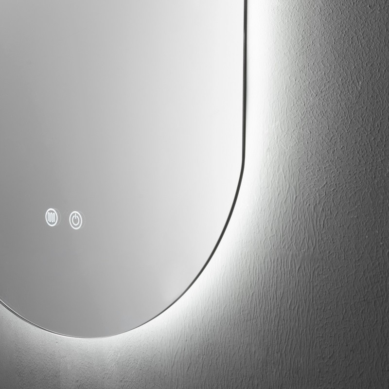 Wat de bediening betreft, is deze Ovalis spiegel voorzien van een Touch-schakelaar om aan te zetten, dat wil zeggen een aanraakknop om het licht aan en uit te zetten.