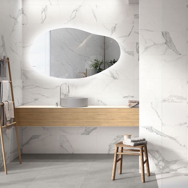 Deze Inspire spiegel heeft een organische vorm en is met zijn imperfecte vorm het accessoire dat u nodig hebt voor een minimalistische en verfijnde badkamer.