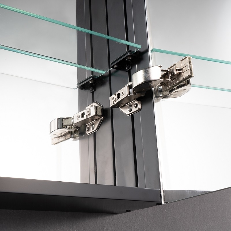 Dankzij de meerdere glazen planken kun je al je beautyproducten moeiteloos opbergen. Dankzij een ingenieus systeem bepaal je zelf de hoogte en locatie van de glazen planken.