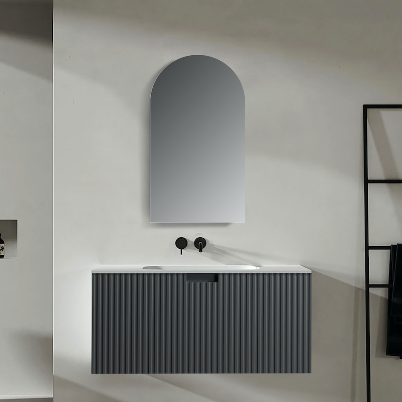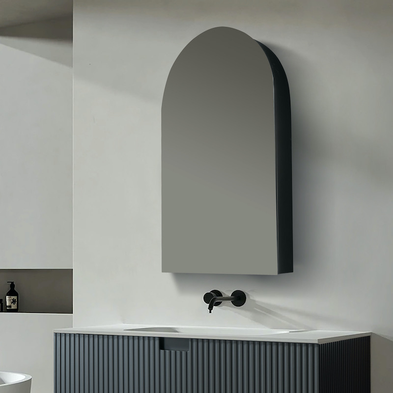 Ontdek onze spiegelkast met ronde boog Arcadia 50x90 cm. Deze kast is veel meer dan een gewone spiegel: het is ook een opbergmeubel.