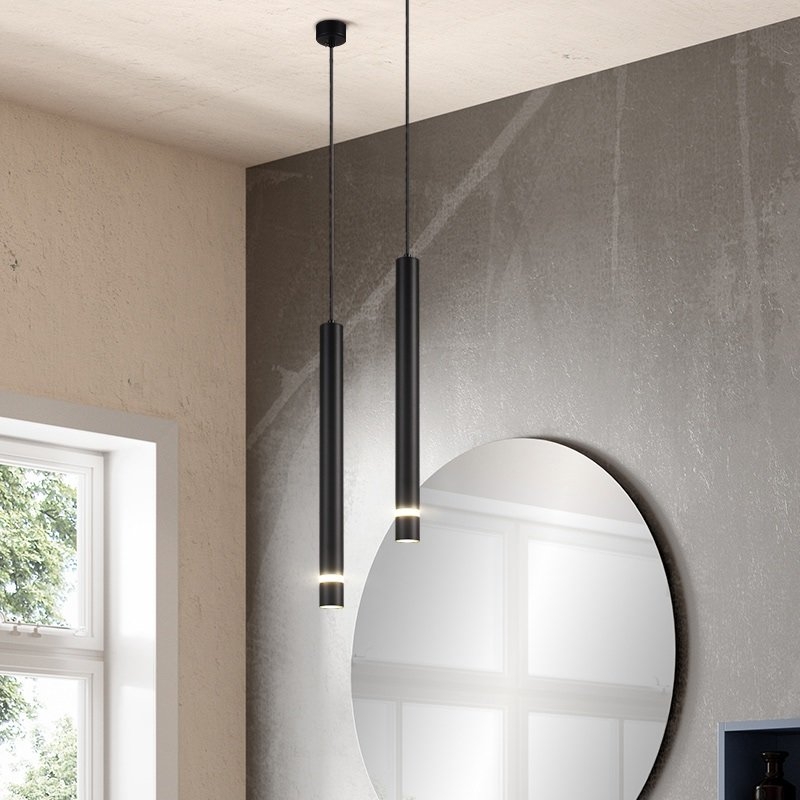 Met deze zwarte LED-badkamerhanglamp in aluminium Cylindro kunt u spelen met lagen en een gegroepeerde module creëren die u op verschillende hoogtes kunt ophangen.